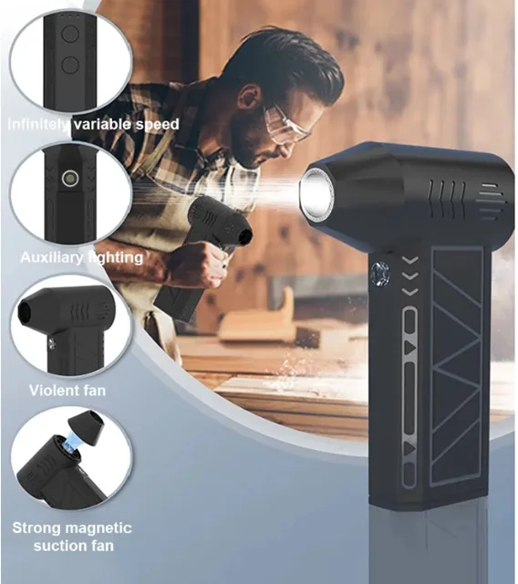 این جت فن از نظر طراحی ساده، ساختار مناسب و عملکرد قدرتمندی را داراست. استفاده از یک موتور با سرعت بالا 130000 دور در دقیقه، می تواند قدرت دمیدن فزاینده، قدرت باد قوی را ایجاد کند. مناسب برای دمیدن آتش ، دمیدن گرد و غبار ، دمیدن دوده، تمیز کردن صفحه کلید، تمیز کردن ماشین و موتور سیکلت، تمیز کردن کنسول وسط ماشین، تمیز کردن زباله های پیک نیک،و غیره