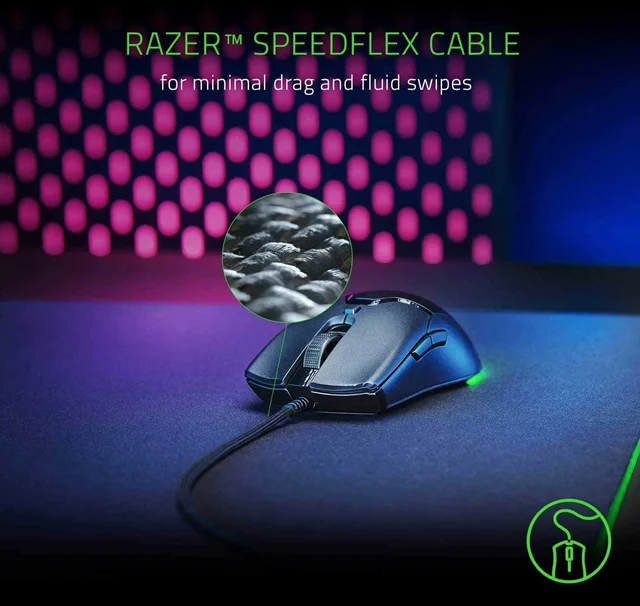 ماوس مخصوص بازی ریزر مدل Viper Mini R3M1 این ماوس دارای نور پشتی RGB با قابلیت تغییر رنگ می باشد که از 16.8 میلیون رنگ پشتیبانی می کند. ماوس ریزر یک ماوس سبک با طراحی ارگونومیک است که حتی با استفاده در ساعت های متوالی از آن هیچ احساس خستگی در شما ایجاد نمی کند. وزن این ماوس تنها 61 گرم است و بسیار برای انجام بازی های کامپیوتری مناسب است. این ماوس دارای یک حافظه بر روی برد خود می باشد که می تواند تا 3 حالت مختلف بازی را در خود ذخیره کند به همین دلیل شما می توانید در هر کجا و هر زمان فقط با به همراه داشتن ماوس خود و بدون نیاز به تنظیم مجدد آن آماده ی رقابت با افراد مختلف شوید. ماوس ریزر دارای یک لیزر اپتیکال با رزولوشن 8500DPI می باشد که حتی کوچک ترین حرکت موس شما را هم تشخیص می دهد و به شما قابلیت کنترل فوق العاده ای بر روی بازی کامپیوتری تان می دهد. این ماوس همچنین دارای 6 دکمه ی قابل برنامه ریزی می باشد که شما می توانید با استفاده از برنامه Razer Synapse 3 آنها را متناسب با سلیقه و نیاز خود تنظیم کنید.