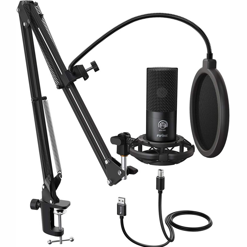 FIFINE T669 USB Microphone Bundle with Arm Stand & Shock Mount for Streaming, Podcasting on Laptop/PC