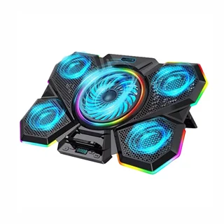 پایه خنک کننده لپ تاپ کول کلد مدل F13 RGB دارای 5 عدد فن خنک کننده با قابلیت تنظیم سرعت فن در سه سطح مختلف، میزان سرعت گردش فن ها قابل تنظیم 1100±10% الی 2100 ±10% دور در دقیقه و دارای بدنه ساخته شده از جنس پلاستیک ABS و فلز، مقاوم در برابر فشار و آسیب های احتمالی، بهره مندی از 2 عدد پورت خروجی USB میباشد.